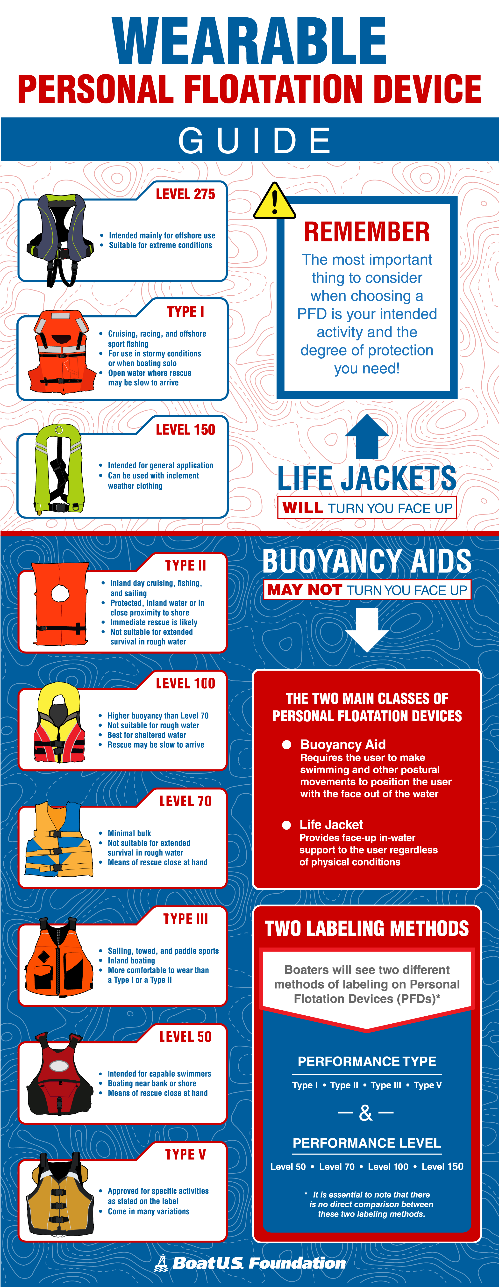 Knowing the people you will most frequently boat with and the boating activities you will be doing, what size and type/level of PFD should you have available?